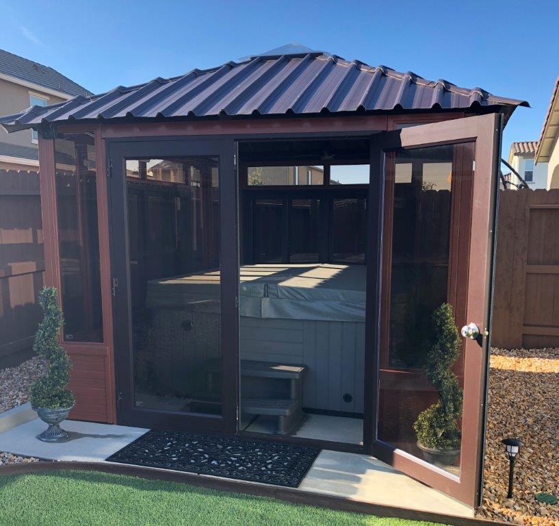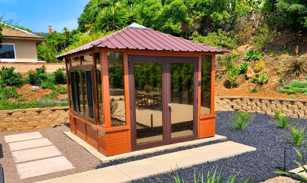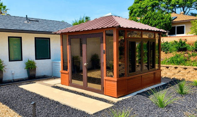 The Brentwood 10×10 is a multi-functional outdoor building with oversized windows to let in a lot of light and to provide excellent views. The Brentwood can be used as a backyard studio, guest house, spa gazebo, or for multiple other recreational purposes. The Brentwood is made of Ultrawood which looks and feels like wood but is made of a high-quality synthetic composite material that is maintenance free and environmentally friendly. The Brentwood has aluminum frame tempered glass double French doors and sliding windows to ensure smooth opening and closing. Additional upgrades are available for a fee including a screen kit and roof bracket support. Multiple upgrades can be added together at a reduced cost.