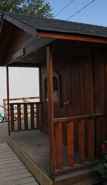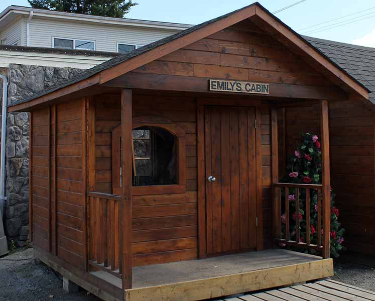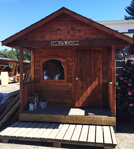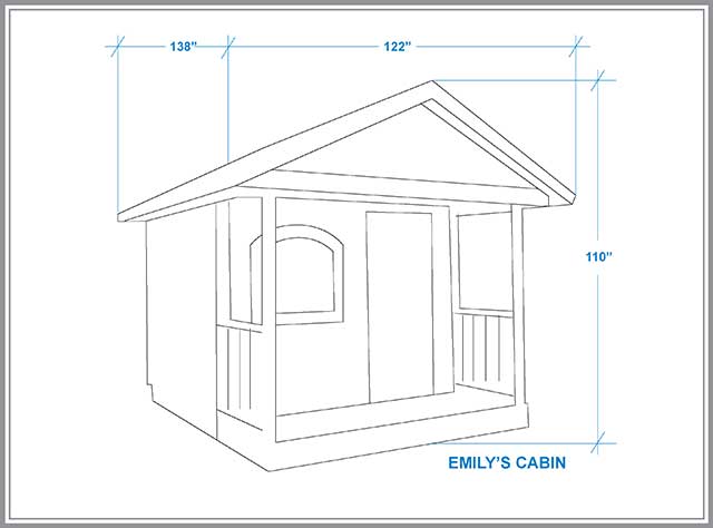La Cabane d’Emily est une jolie addition pour votre jardin avec un adorable balcon. La cabane d’Emily peut être utilisée comme un bureau pour travailler ou une maisonnette pour s’amuser. Les fenêtres, le balcon, et le panneau personnalisable sont tous inclus. La taille standard de la Cabane d’Emily est de 8 pieds de large par 10 pieds de profondeur. La taille de la cabane d’Emily peut être changée pour un moindre coût.